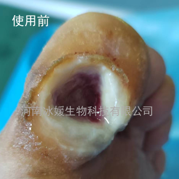 患者40岁,脚趾伤口久治不愈,在客服指导下使用冰媛玉液®外伤愈合液湿敷10小时,之后每天湿敷2小时。