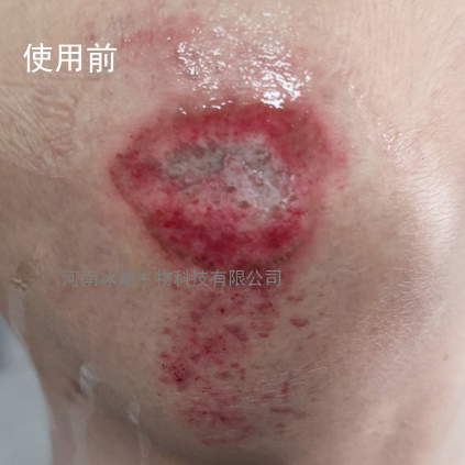 男性,膝盖擦伤,使用冰媛玉液®外伤愈合液湿敷10个小时,打开后开放愈合,第二天后自己喷雾使用。全程无痛愈合。